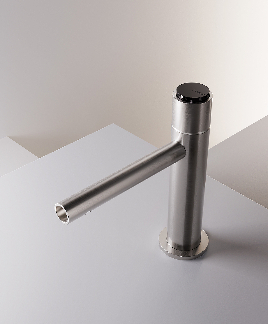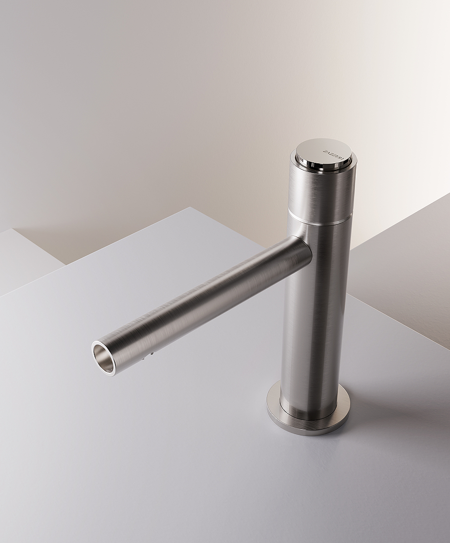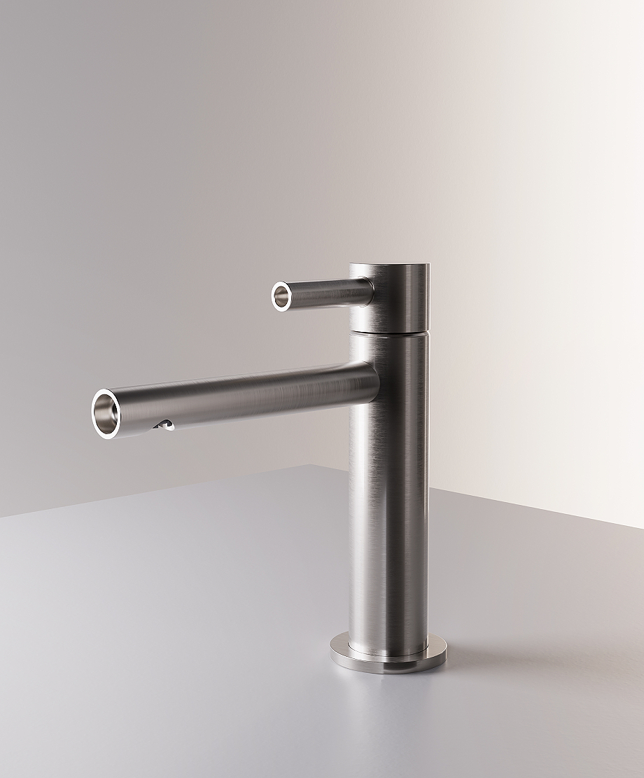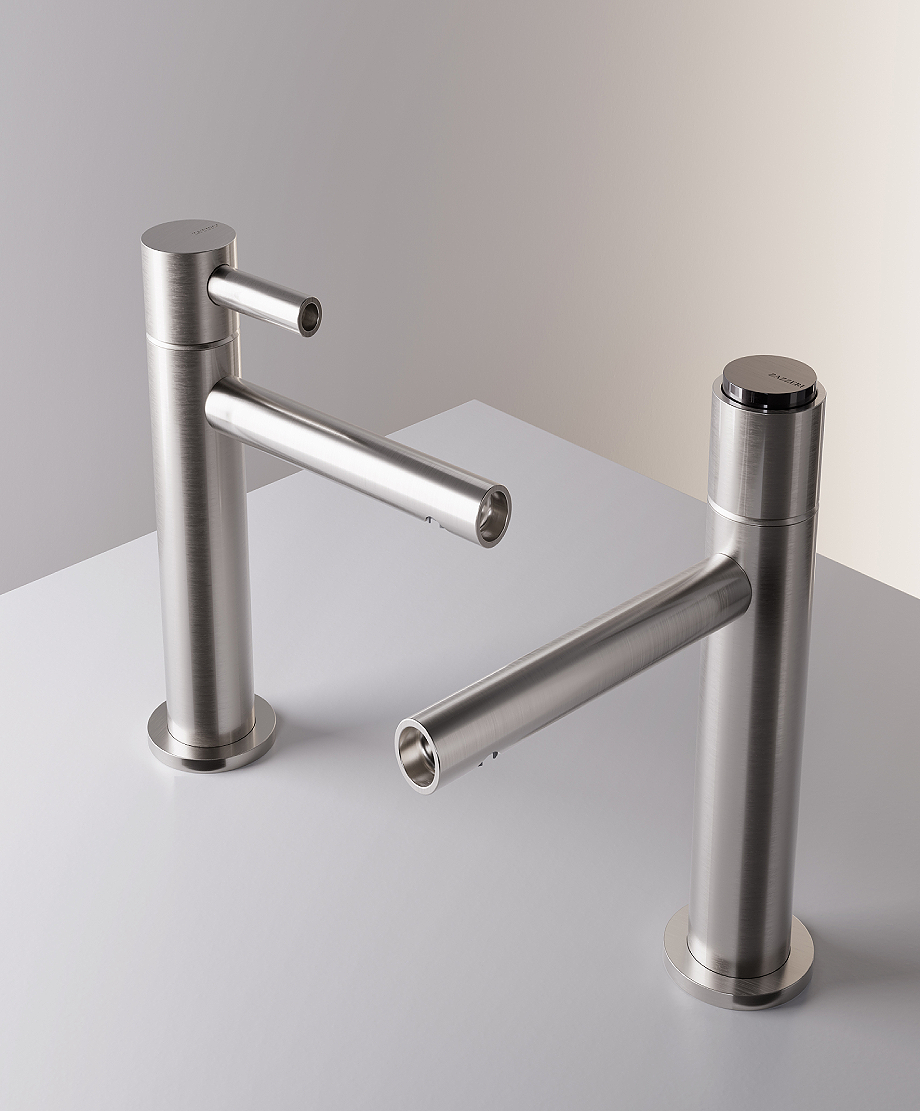 La colección se distingue por un estilo esencial y riguroso, basado en un único elemento: la forma de tubo. Tanto el caño como la maneta adoptan un perfil redondo, creando líneas limpias y continuas, libres de elementos decorativos. Proporciones calibradas, superficies impecables y detalles constructivos definen una identidad basada en el propio material, permitiendo que el acero exprese toda su autenticidad.