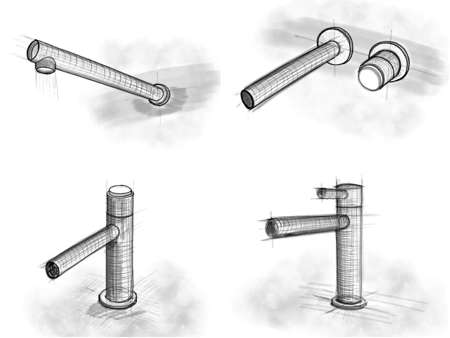 La investigación formal también se refleja en la decisión de eliminar el clásico corte oblicuo en la parte posterior de las manetas, tanto en la versión de palanca como en la versión cilíndrica. Esta decisión aporta continuidad y claridad a las formas de los grifos, reforzando la coherencia del diseño y la pureza geométrica de cada elemento.