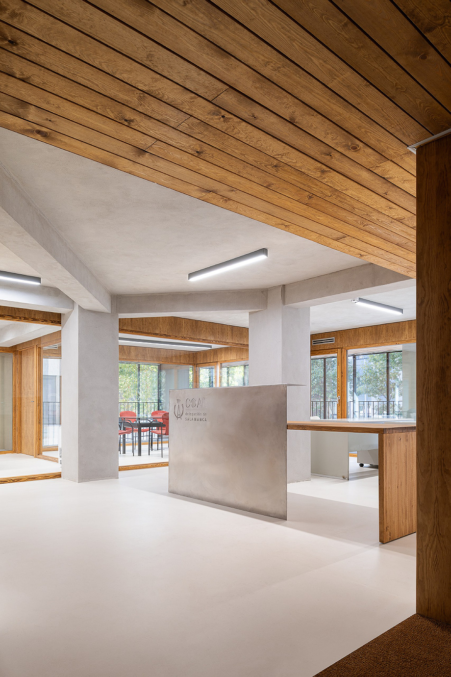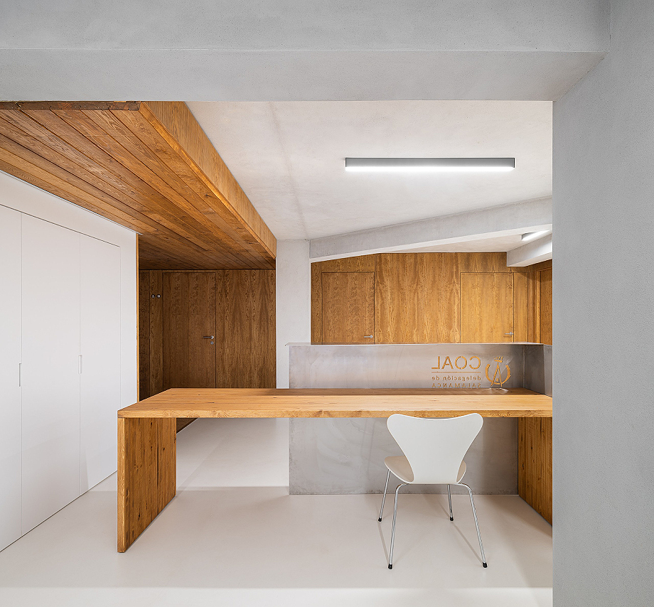 La Oficina de Acciones Arquitectónicas Temporales (OAAT) ha sido la encargada de realizar la reforma de la delegación en Salamanca del Colegio Oficial de Arquitectos de León (COAL), convirtiéndose en una oportunidad para revisar los espacios de trabajo cotidianos de un colegio profesional. La intervención planteó una reflexión precisa sobre cómo adaptar los espacios profesionales a los nuevos tiempos, recuperando al mismo tiempo su relación con la ciudad. A través de una estrategia clara y contenida, el proyecto reordena, abre y actualiza un interior fragmentado, transformándolo en un entorno flexible, luminoso y responsable en términos de sostenibilidad.