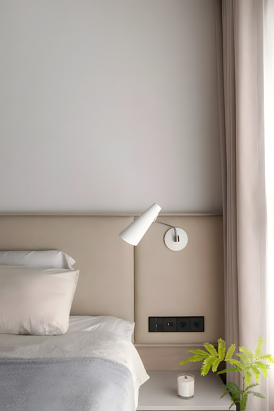 En este conjunto, los interruptores LS 990 de JUNG en blanco se integran en la composición cromática en aquellos puntos donde los elementos deben reafirmarse, mientras que en acabado lacado oscuro actúan como contraste más sutil. Un detalle singular lo aportan los pulsadores KNX en el color de Les Couleurs® Le Corbusier Terre Sienne Brûlée 59, que se incorporan al ladrillo rojo de la pared del recibidor como un gesto de bienvenida y, al mismo tiempo, como una declaración cromática.