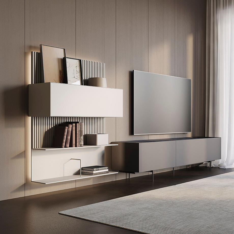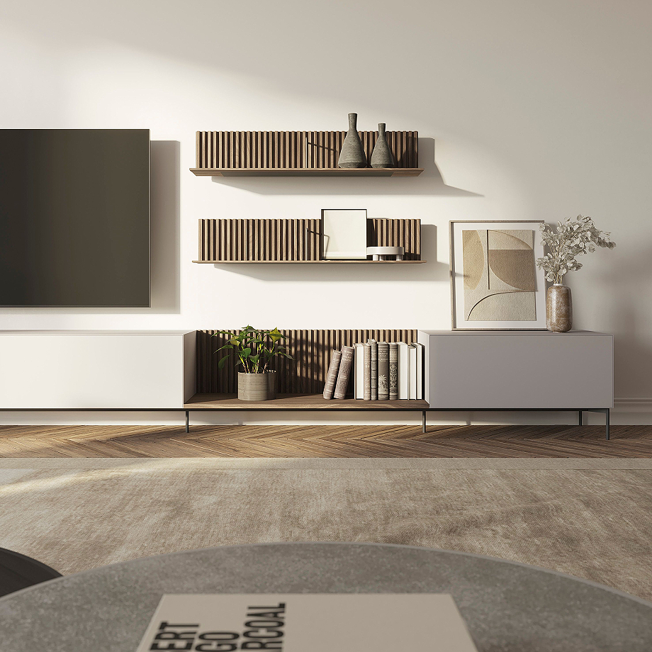 Aparador TV AD / Estantes plafón ART / Módulo MITRA