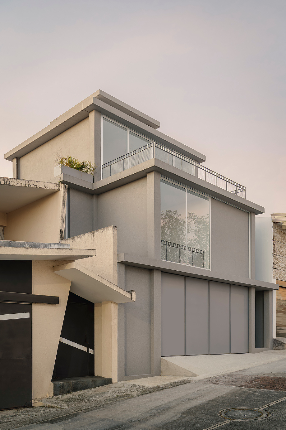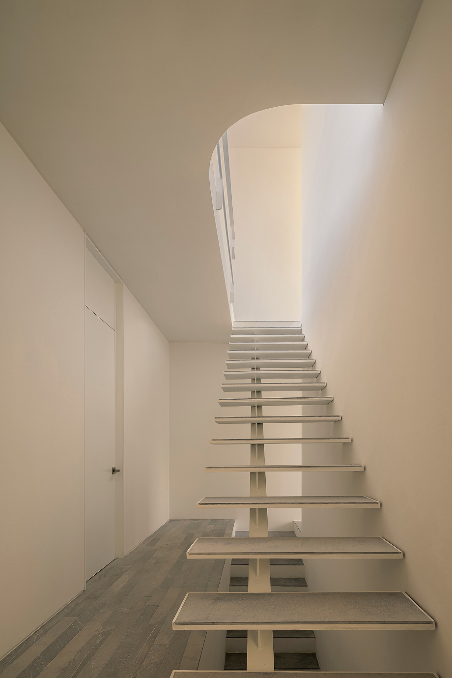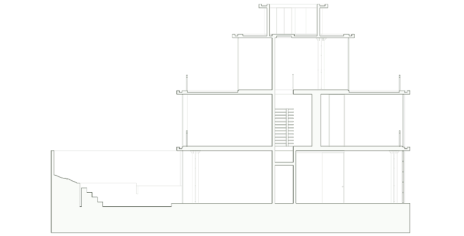 En lo más alto, un volumen de servicio remata el conjunto sin artificios. De lenguaje directo y sobrio, alberga los sistemas que hacen posible el funcionamiento de la vivienda. Lejos de ocultarse, este cuerpo se muestra con claridad y cierra la composición, subrayando una idea precisa: incluso los elementos más prácticos pueden formar parte de la expresión arquitectónica con plena legitimidad.