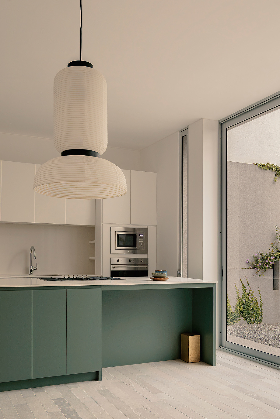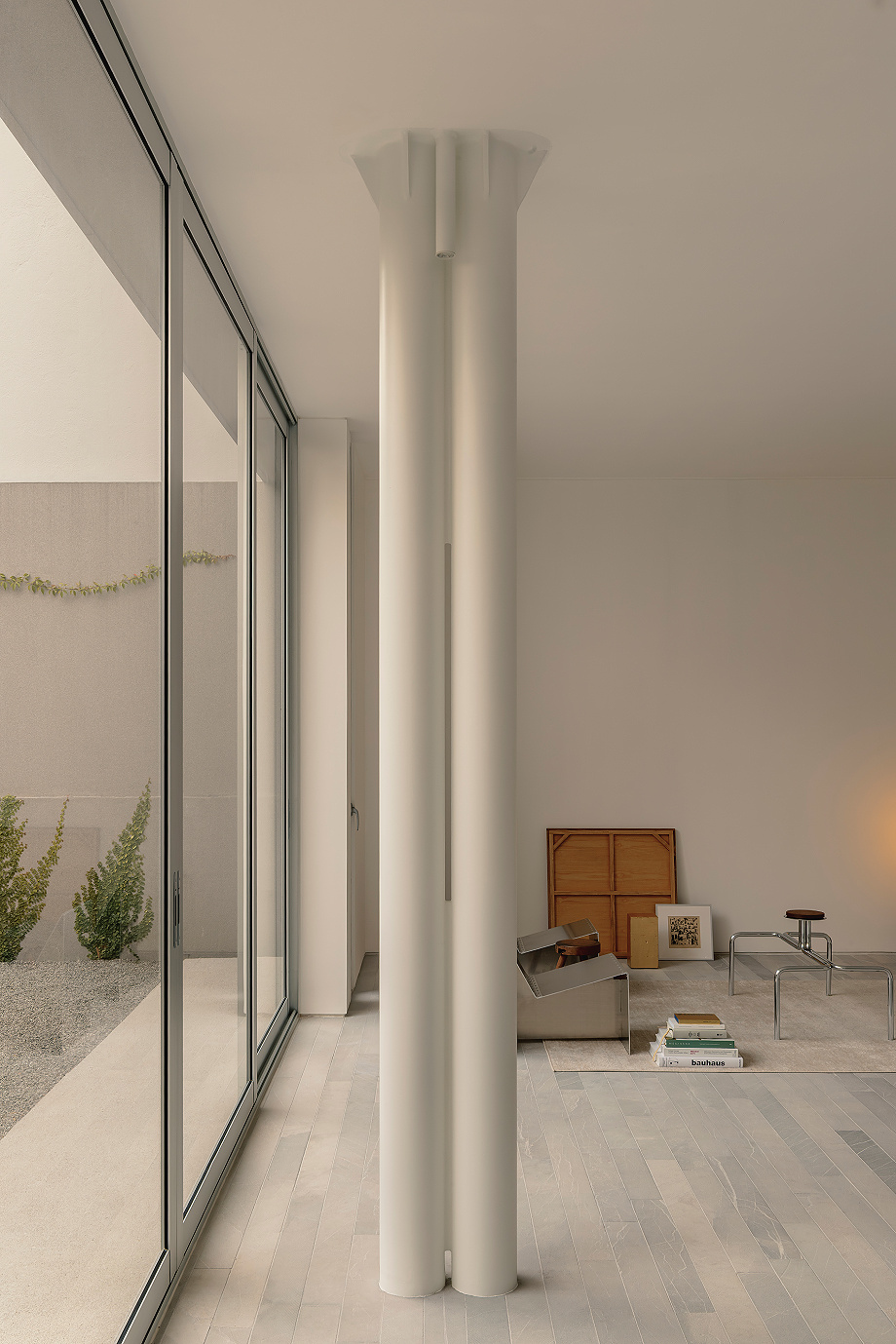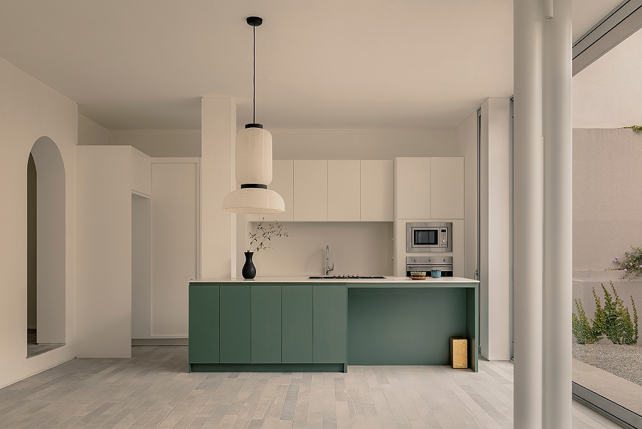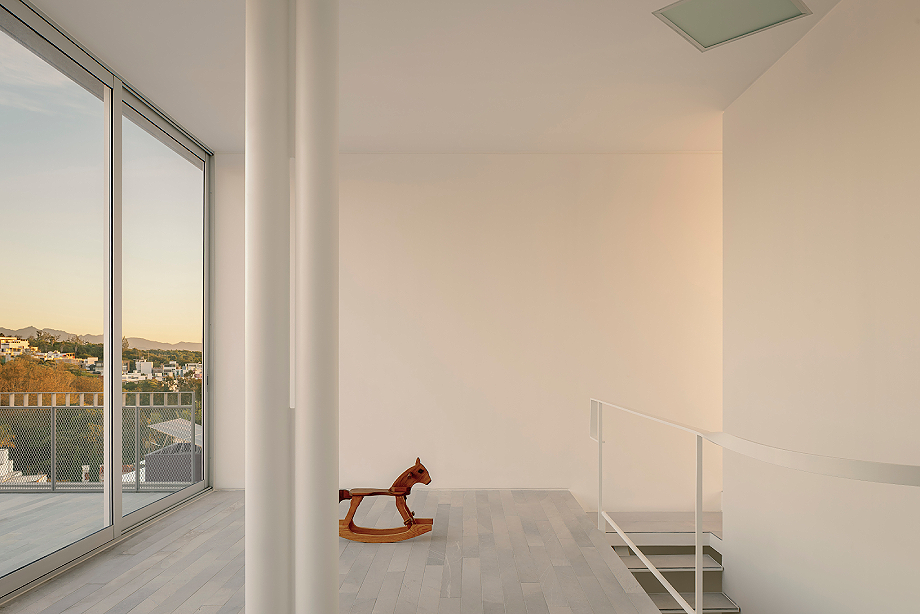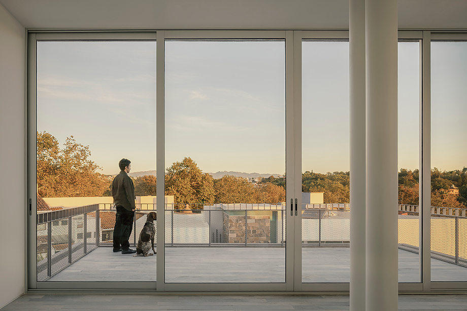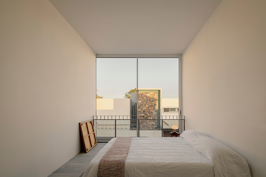 Este planteamiento permite asegurar la privacidad sin perder coherencia dentro del conjunto, dando lugar a una arquitectura recogida pero permeable. Los interiores, completamente blancos, generan una sensación de pausa, como si el tiempo se diluyera. Cada espacio se experimenta casi como una pieza expositiva, donde el exterior se transforma en una imagen enmarcada que invita a la contemplación, la memoria y la anticipación. «El mundo exterior es aquí una pintura que invita a observar, a recordar los días que han pasado y a imaginar los días que vendrán», apunta el arquitecto.