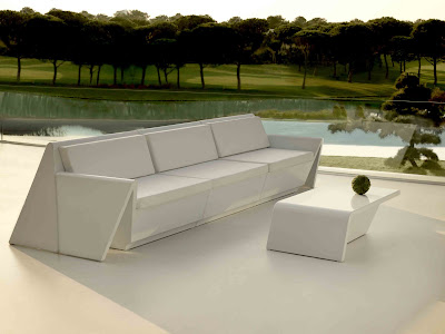Rest: sillón, sofá y mesa componen este conjunto inspirado en el origami (arte de origen japonés basado en el plegado del papel para hacer figuras) y en el principio «menos es más». La estructura modular de esta serie de líneas geométricas, dinámicas y ligeras permite adaptarla a cualquier necesidad y cualquier espacio.