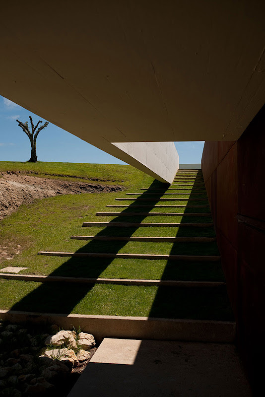 «Una arquitectura que interfiriese lo menos posible en el paisaje que la rodeaba». Ésta fue la principal petición de los propietarios -fascinados por la belleza del paisaje- al estudio Topos Atelier de Arquitectura a la hora de desarrollar el proyecto de esta espectacular vivienda, ubicada en las afueras de la ciudad portuguesa de Alcobaça.